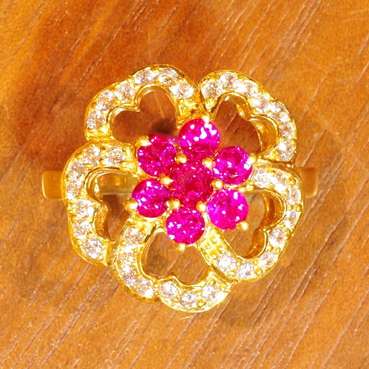 ルビーお花柄リング